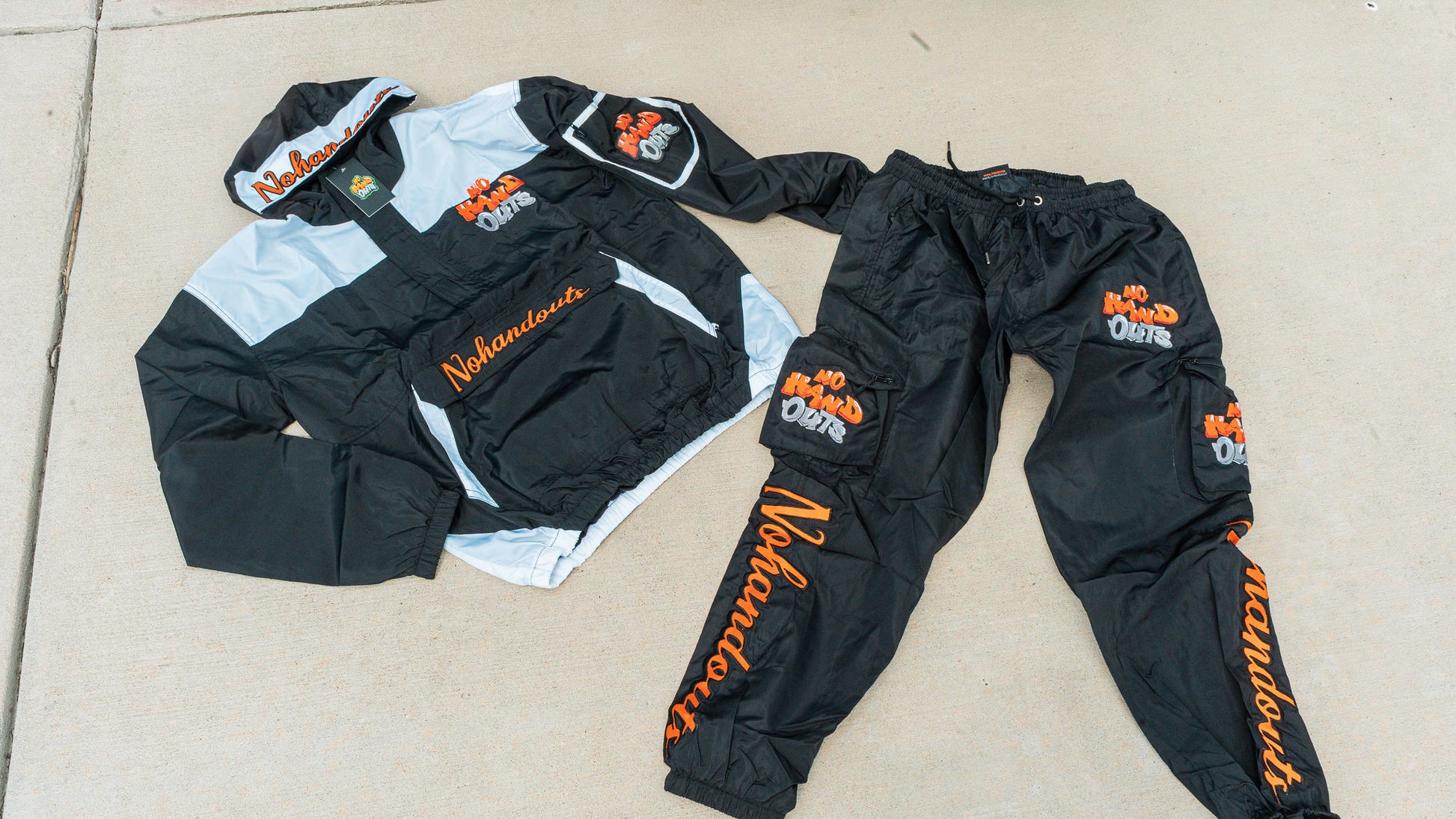 Overall, No HandOuts windbreaker sets combine practicality with contemporary style, making them a go-to choice for anyone looking to stay active while looking effortlessly chic.